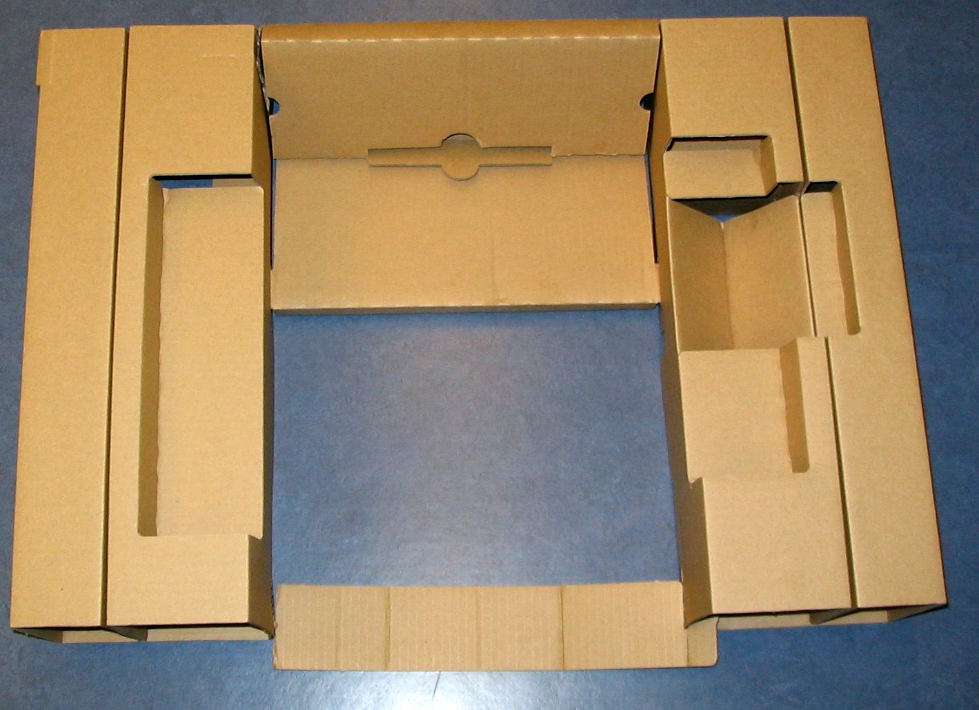 Sisäosasuunnitteluun on käytetty paljon panoksia. Sisäosat ovat sen verran monimutkaisia, että riittävää suojausta ja edes kohtuullista pakattavuutta ei varmasti ole saavutettu ensimmäisellä yrittämällä. Näyttäisi siltä, että pakattavuutta ei ole arvostettu kovin korkealle materiaalia valittaessa, mutta ehkäpä Kiinassa työvoima on edelleen halpaa. Yritin netistä etsiä pudotusvaatimuksia näytölle, mutta en niitä onnistunut löytämään. Oletettavasti tässä tapauksessa on käytetty 60 cm vaatimusta. Joka tapauksessa sisäosista näkee, että sitä on ollut tekemässä kokenut pakkaussuunnittelija. Aloittelija ei saa tuollaista rakennetta toimimaan.