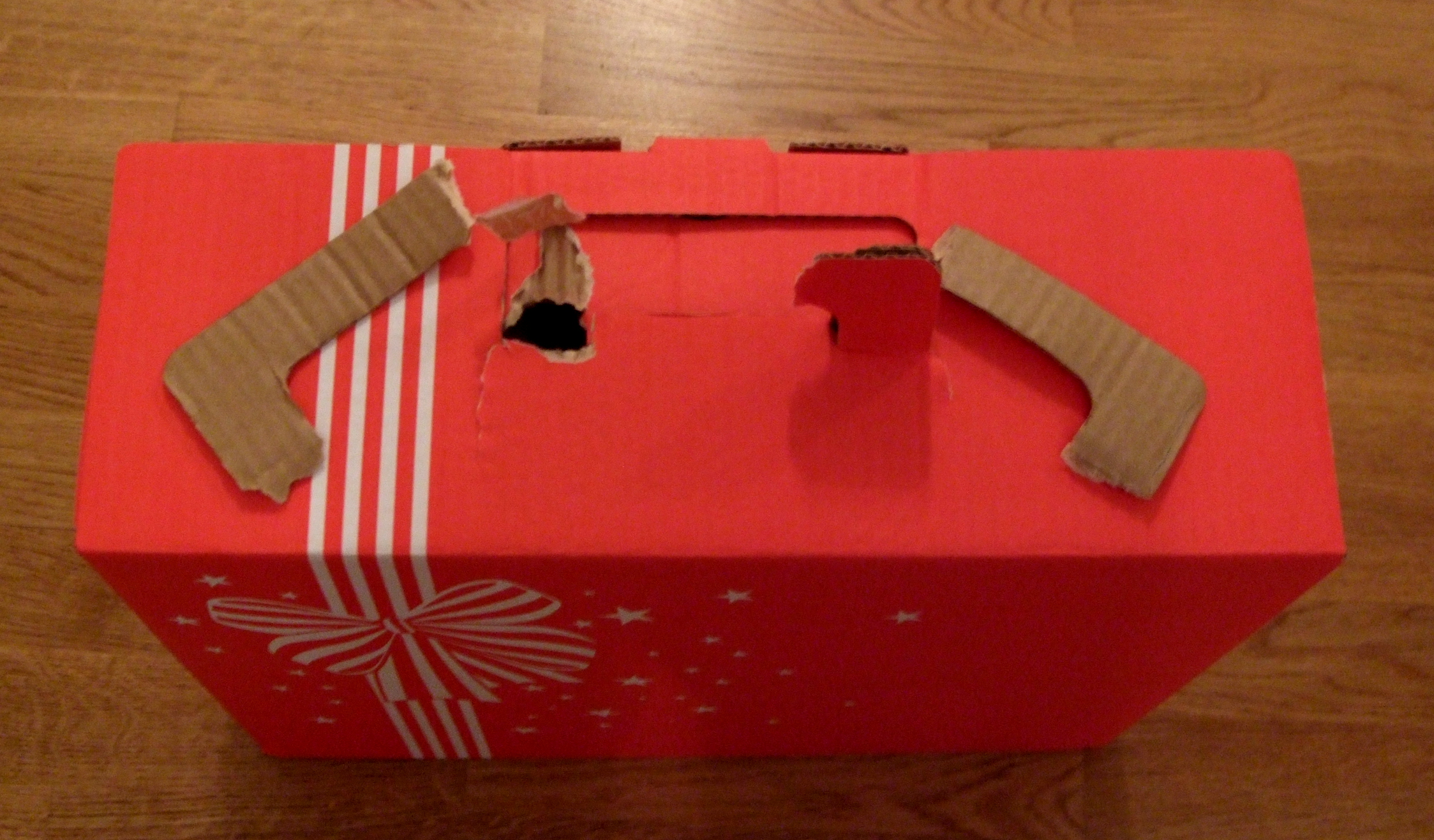 Laatikon rakenne oli Fefco 0713S, josta tekee erikoisen nimenomaan kahva. Ongelmana oli, että kahva repesi juuresta irti. Rakenne oli tehty siten, että se muodostui kahdesta kahvasta, mikä vahvistaa sitä jonkin verran. Käytännössä kaksinkertainen rakenne ei kuitenkaan läheskään tuplaa kestävyyttä, sillä niiden saaminen toimimaan täsmälleen yhdessä on mahdotonta. Yleensä ensin kantaa toinen ja kun se alkaa hajota, tulee toinen osa mukaan. Hajoaminen tapahtuu yleensä nopeina peräkkäisinä tapahtumina. Tässä tapauksessa kahvan toimintaa haittaa vielä se, että pystysuorissa osissa on paperin kuitusuunta poikittain.